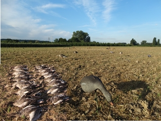 Lockjagd auf Gänse mit Schießen aus der Gänseliege im Jagdparcours